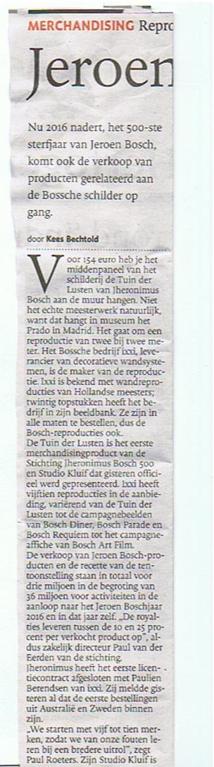 April 2012, Brabants Dagblad: Jeroen Bosch de wereld over
